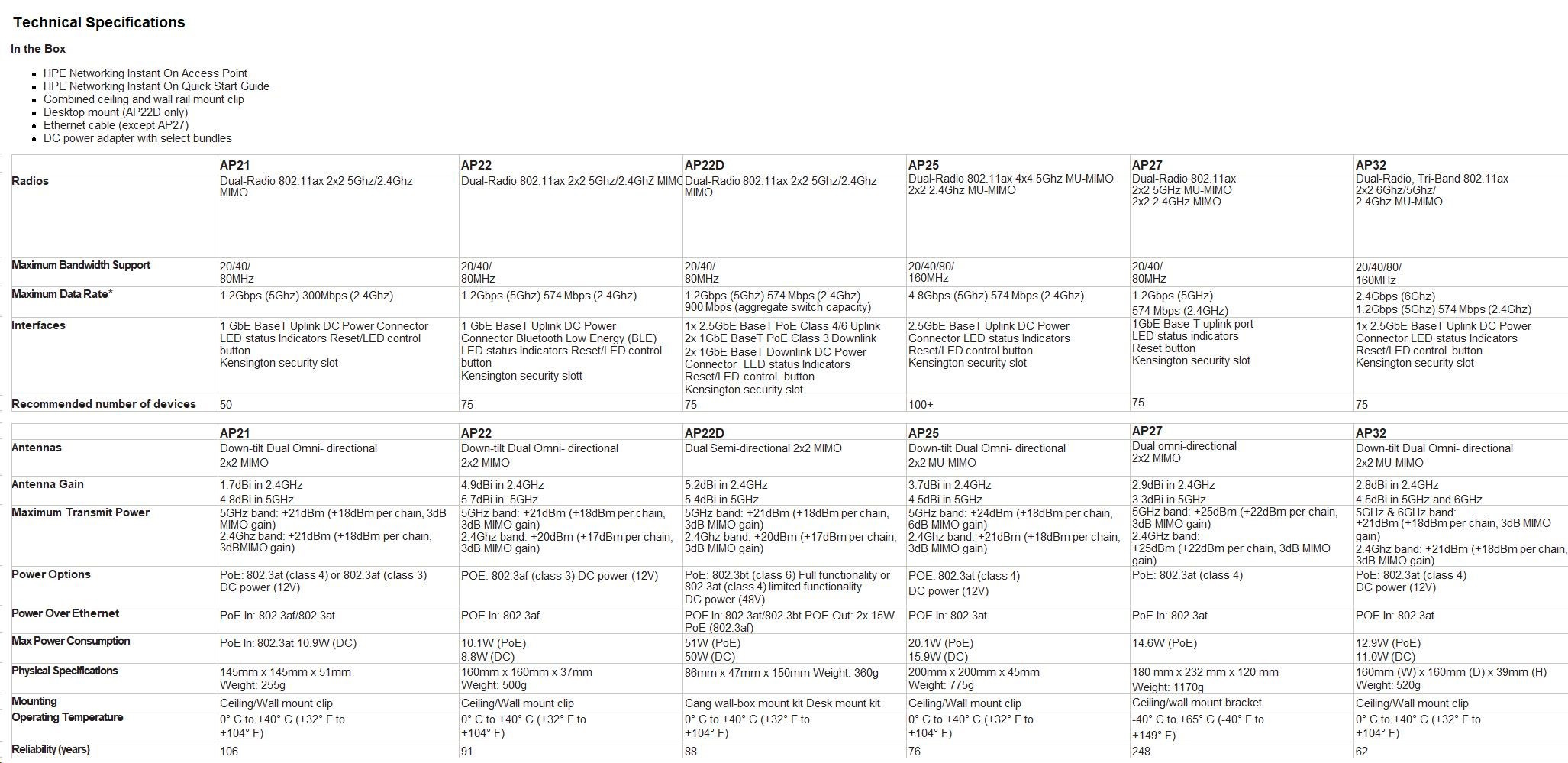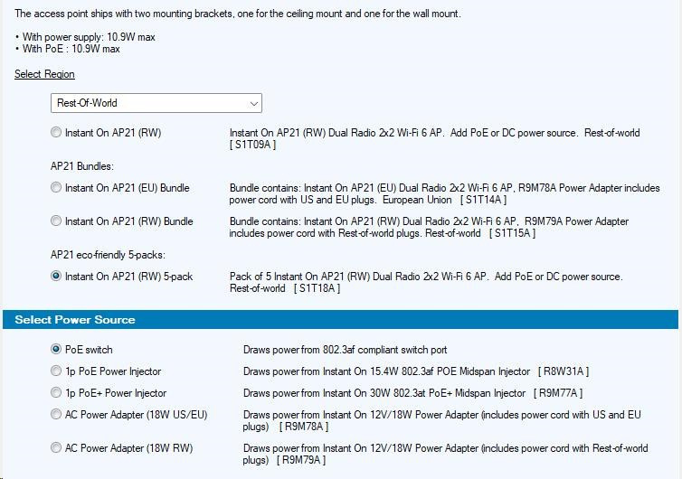HPE Networking Instant On AP21 (RW) Dual Radio 2x2 Wi-Fi 6 Access Point 5 Pack (+ 5 Mount Brackets).