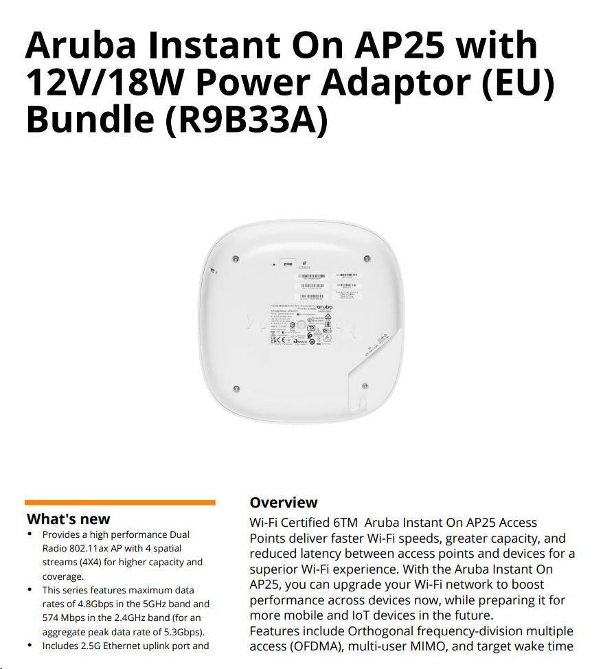 The HPE Networking Instant On Wi-Fi 6 Access Points portfolio is designed to meet the increasing volume of connected devices that face small businesses. Our range of Wi-Fi Certified 6 access points delivers superior performance, coverage, and speed at a competitive price that is perfect for small and growing businesses.