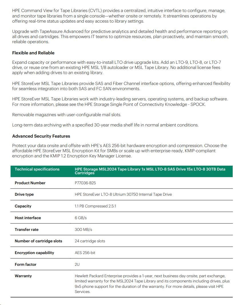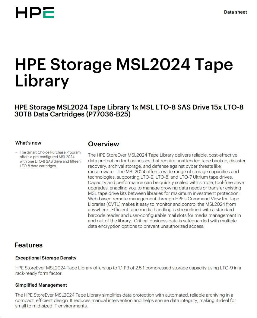 P77036-B25 HPE Storage MSL2024 Tape Library