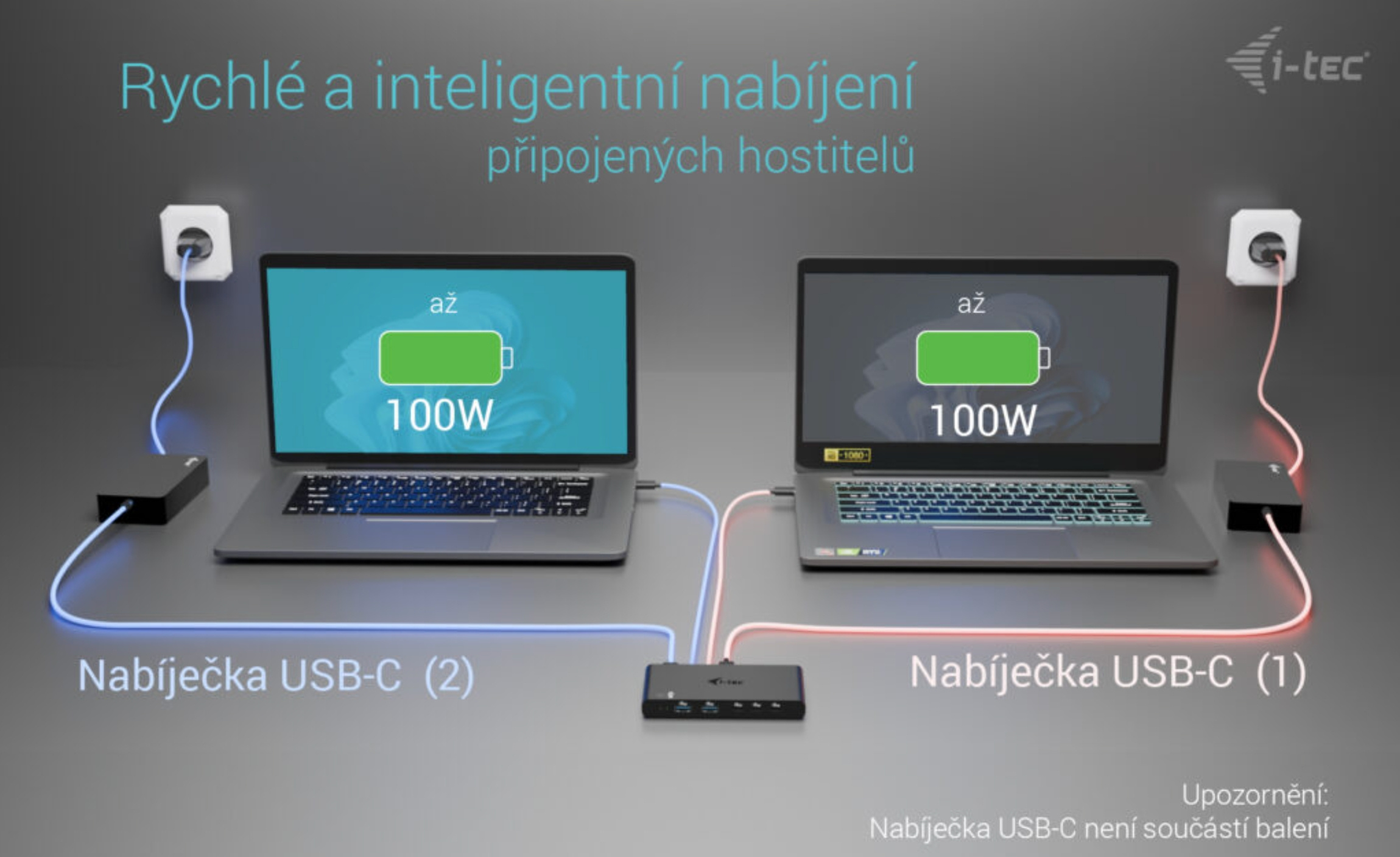 • Dvojité Power Delivery – nabíjení obou připojených zařízení (až 2× 100 W)