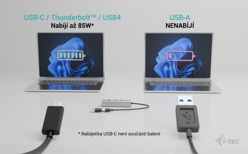 S týmto rozbočovačom získate ďalšie 4 porty USB (2x USB-A a 2x USB-C). Pripojte externú klávesnicu a myš, prenášajte dáta alebo filmy z USB flash disku rýchlosťou až 5 Gb/s a nabijte svoj notebook/tablet výkonom až 85 W. *