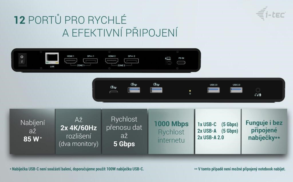 Klonovanie MAC adresy: áno (za použitia softvéru i-tec Docker Pro)