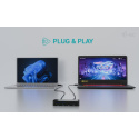 Rozbočovač nevyžaduje instalaci ovladačů, stačí jej připojit kabelem USB-C nebo USB-A a můžete jej začít ihned používat. Rozbočovač má vestavěnou přepěťovou ochranu počítače pro případ zkratu na periferiích.