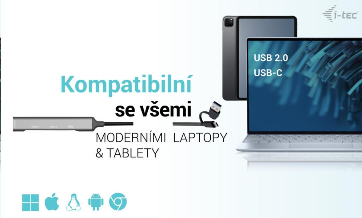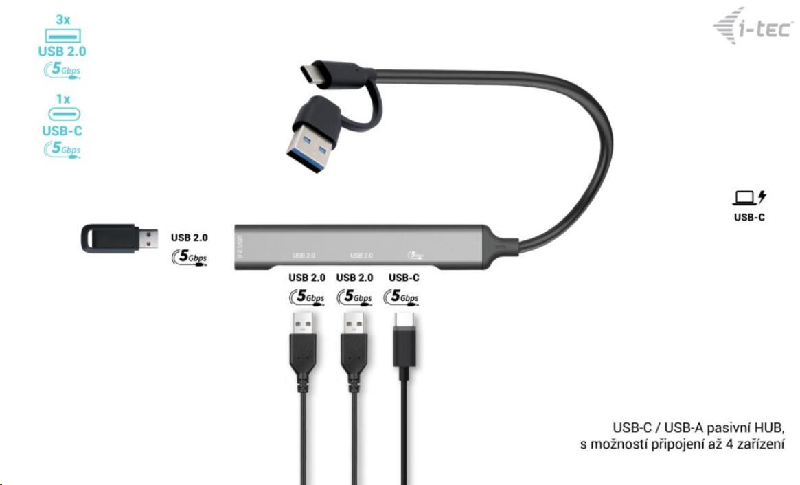Rozbočovač nevyžaduje inštaláciu žiadnych ovládačov, stačí ho pripojiť kábla USB a môžete ho ihneď začať používať. Rozbočovač má zabudovanú prepäťovú ochranu počítača pre prípad skratov na perifériách. Vďaka kompaktným rozmerom a nízkej hmotnosti ho môžete vždy nosiť v taške – kovový povrch chráni rozbočovač pred poškodením a poškrábaním.