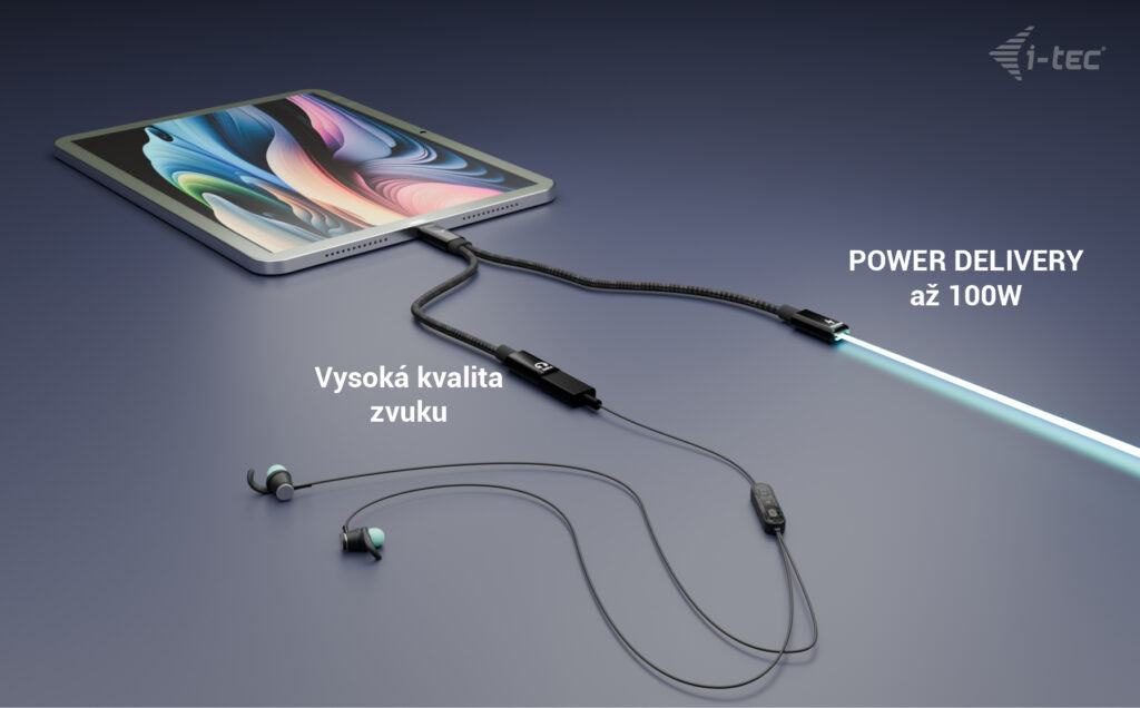 Popis i-tec USB-C Cable Splitter Audio/Data, Power Delivery 100W
