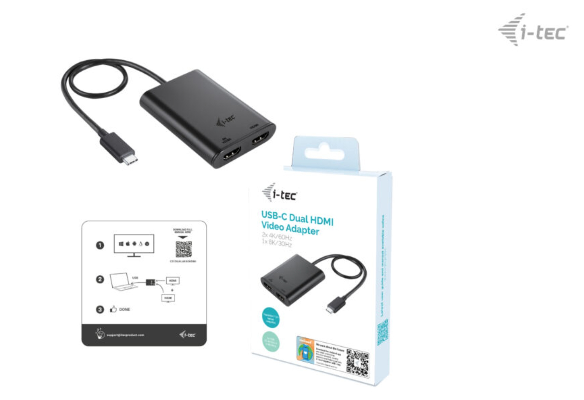Popis i-tec USB-C Dual 4K/60Hz (single 8K/30Hz) HDMI Video Adapter