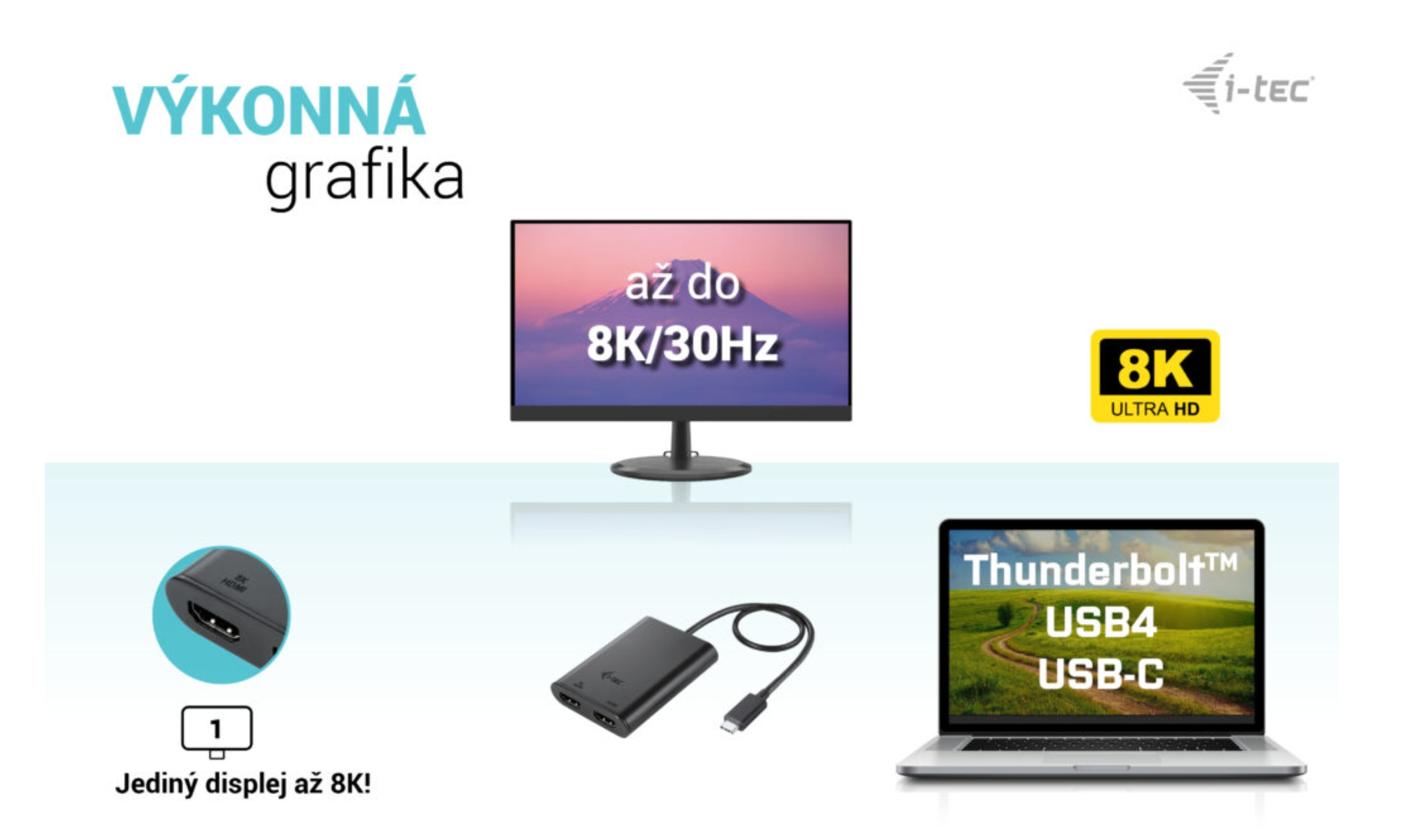 • Adaptér podporuje rozlišení až 1x 8K / 30 Hz nebo 2x 4K / 60 Hz