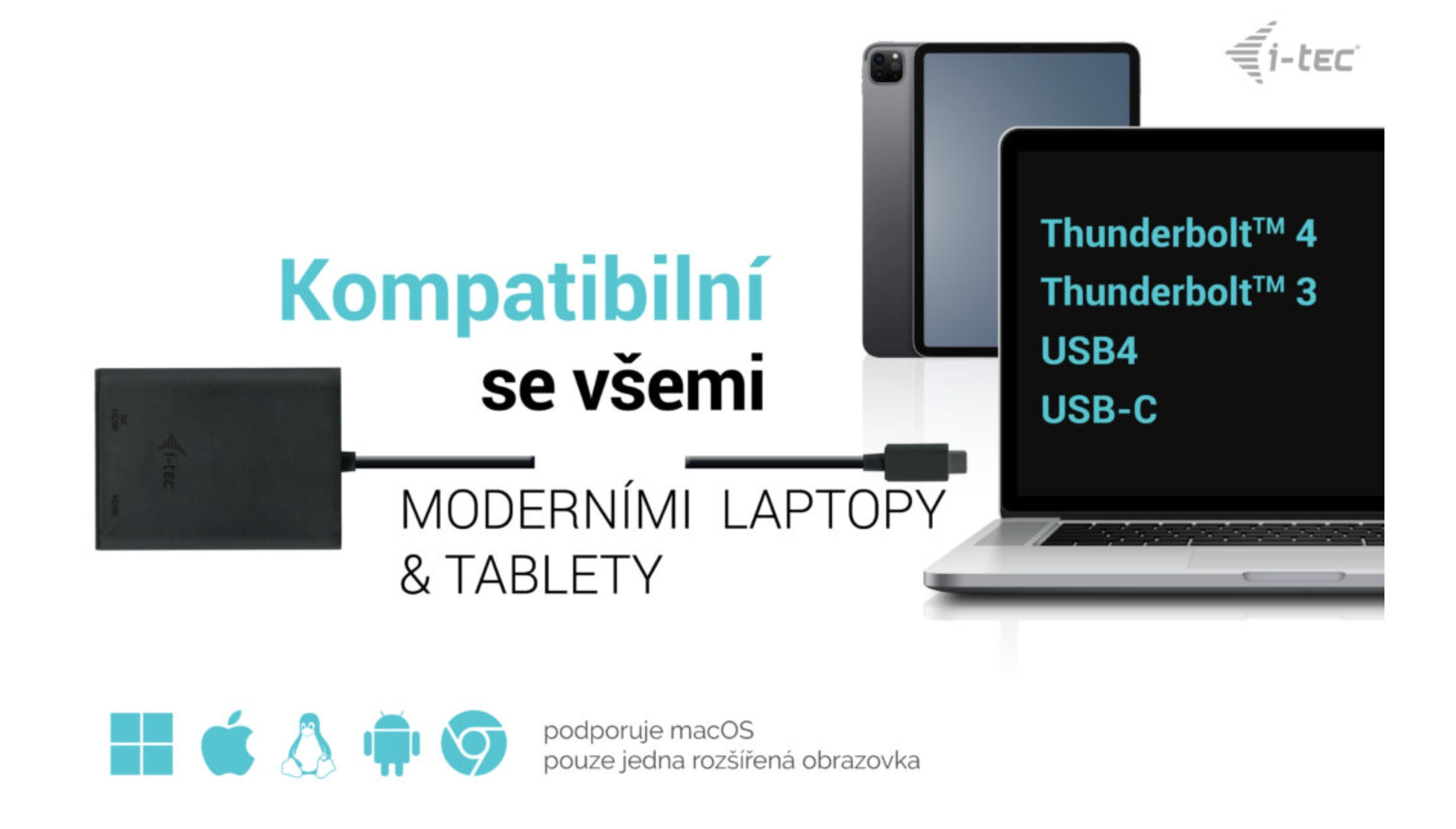 • Lze připojit ke všem portům USB-C: USB-C, USB4, Thunderbolt 3 a Thunderbolt 4.