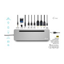 Ergonomická kovová dokovací stanice USB-C s podporou až 3 externích monitorů. Stanice je kompatibilní s jakýmkoli notebookem vybaveným portem USB-C nebo Thunderbolt (60 cm dlouhý integrovaný kabel je dostatečně dlouhý pro připojení všech notebooků s obrazovkami do velikosti 15”). Dokovací stanice poskytuje 4 porty USB, spolehlivé a rychlé připojení k firemním sítím díky integrovanému portu LAN a napájení až 100 W. Konstrukce stanice umožňuje také její použití jako stojanu pro notebook.