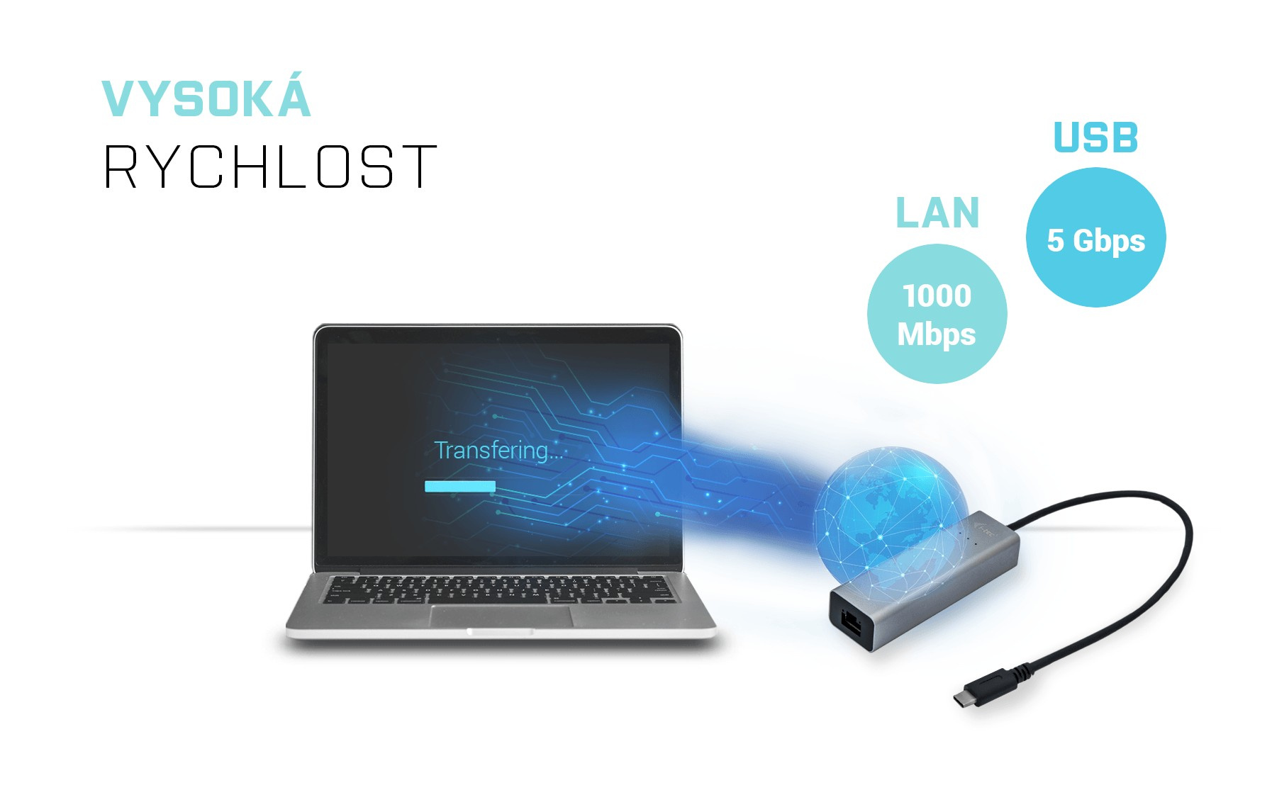 • Rozšiřte váš notebook, tablet nebo PC s novým USB-C nebo Thunderbolt 3 konektorem o Gigabit Ethernet port pro vysokorychlostní internetové připojení