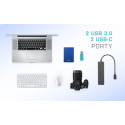 S tímto hubem získáte další 4 další USB: dva standardní USB 3.0, a dva USB-C porty. Připojte si externí klávesnici a myš, přenášejte data nebo filmy z USB flash disku rychlostí až 5 Gbps nebo nabíjejte svá mobilní zařízení nabíjejte (standardní USB rychlostí 0.9A).