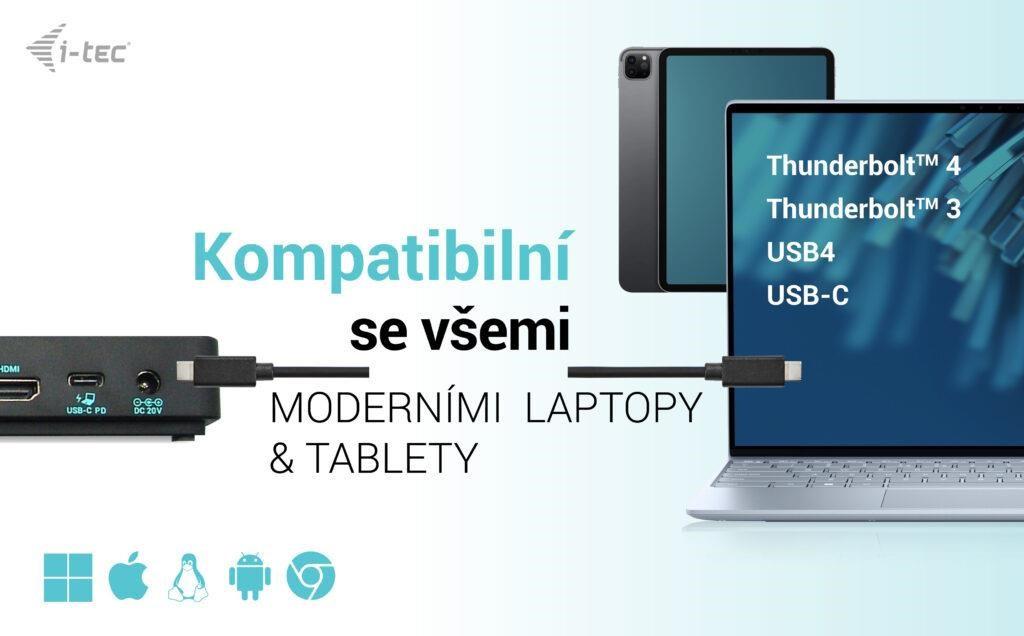 • Dokovacia stanica je kompatibilná so všetkými modernými notebookmi vybavenými portmi USB-C, USB4 alebo Thunderbolt™ 3/4.