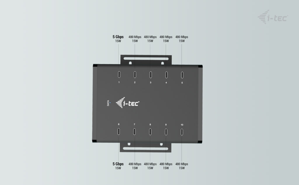 • 10x USB-C port, všechny podporují 15 W nabíjení
