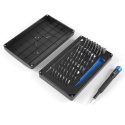 Praktická sada pro opravy veškeré drobné elektroniky jako jsou mobilní telefony, notebooky a mnoho jiných zařízení. Obsahuje šroubovák + 64 náhradních bitů různých velikostí. Sada je přehledně uložena v plastovém pouzdře. Vše je vyrobeno z vysoce kvalitního a odolného materiálu, který je zárukou dlouhodobé životnosti a spolehlivosti.