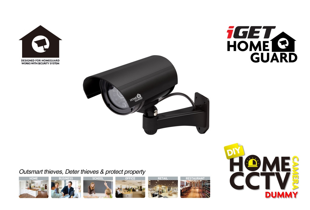 iGET HGDOA5666 - atrapa/maketa bezpečnostnej CCTV kamery, blikajúce červ. LED,4x nálepka CCTV varovania