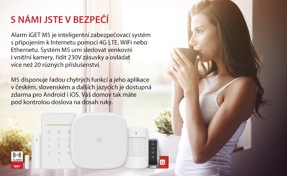 Mějte svůj domov pod kontrolou s inteligentním zabezpečovacím systémem iGET SECURITY M5-4G Premium. Je bezdrátový, s vaším telefonem komunikuje přes 4G LTE, WiFi a Ethernet. Při výpadku Internetu se přepojí na 4G LTE, umí také posílat SMS zprávy pomocí GSM. Rozumí si s Androidem i iOS, můžete s ním sledovat vnitřní a venkovní IP kamery, řídit 230V zásuvky a dalších více než 20 typů příslušenství. Výdrž bateriií v příslušentví je až 5 let a dosah k alarmu až 1 km. Alarm dále nabízí připojení na pult centrální ochrany, režim opatrování, funkci domovního zvonku nebo speciální smart funkce a tlačítka. Nejvyšší zabezpečení komunikace je 256 bit a upravit nastavení alarmu můžete vzdáleně odkudkoliv. Manuál i aplikace jsou kompletně v českém, slovenském, polském, maďarském a anglickém jazyce.
