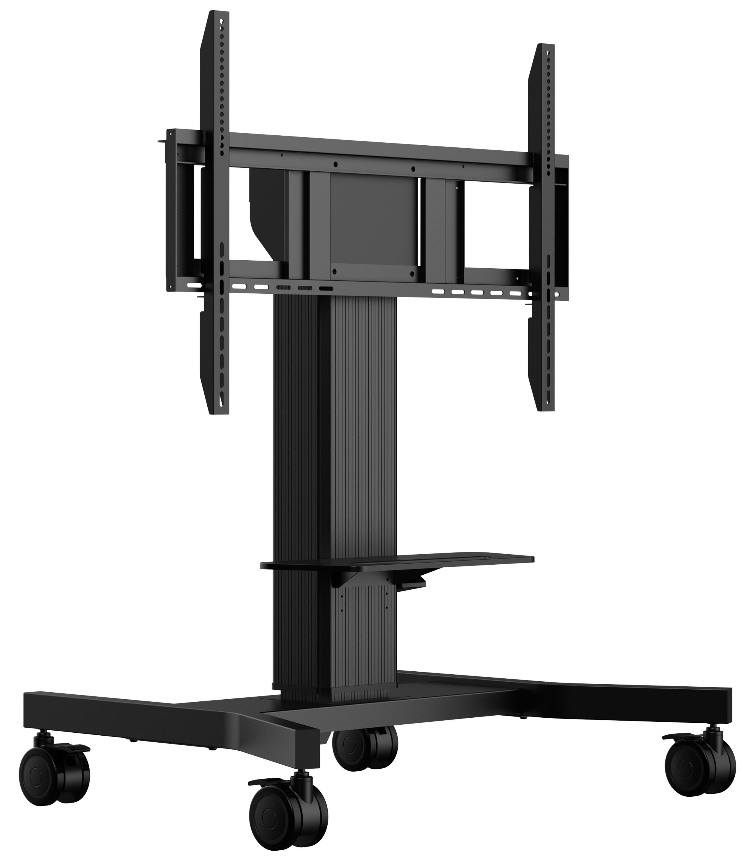 Motorizovaný vozík pro dotykové obrazovky až do VESA 800 x 600 mm. Tento produkt je jedinečný díky své velikosti a snadnému upevnění pomocí držáků „vytáhněte a uvolněte“. Tento mobilní stojan s elektrickým nastavením výšky poskytuje tiché nastavení výšky a integrovaný držák obrazovky obsahující většinu vzorů VESA, takže je vhodný pro téměř každý displej. Maximální podporovaná velikost displeje je 86", maximální hmotnost je 100 kg.