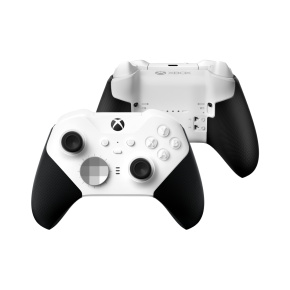 Bezdrátový ovladač Xbox Elite Series 2 – Core v bílé barvě zahrnuje palcové ovladače s nastavitelnou