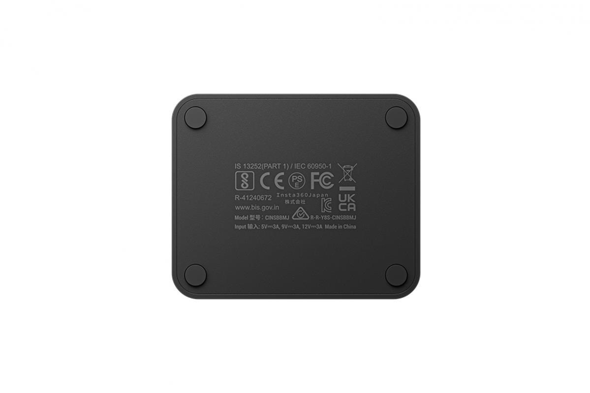 Nabíjací hub pre tri batérie pre kameru Insta360 X4. Hub nabijá 2290 mAh akumulátor za 43 minút (za 26 minút na 80%). Hmotnosť: 109g Rozmery: 75 x 62 x 34 mm