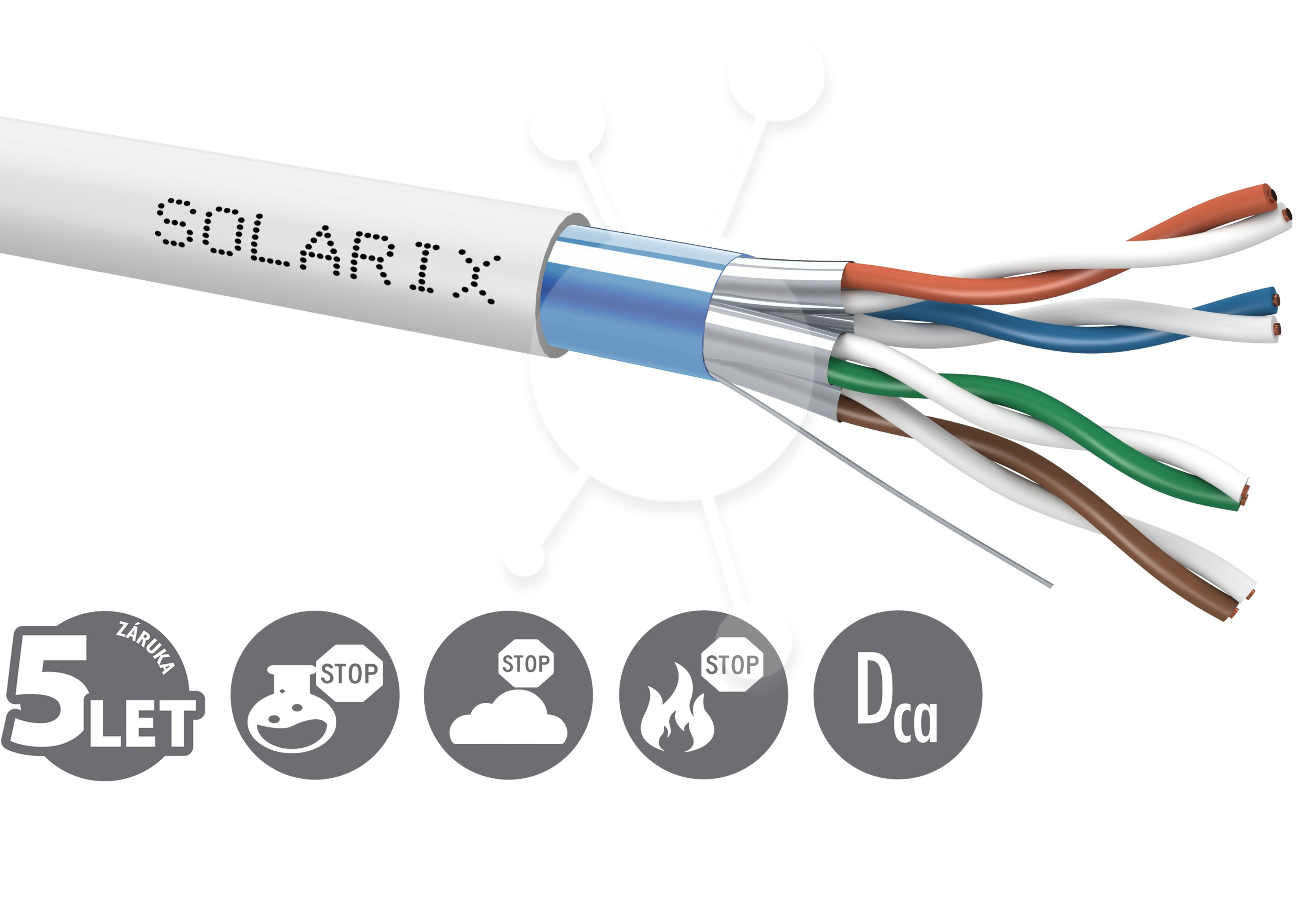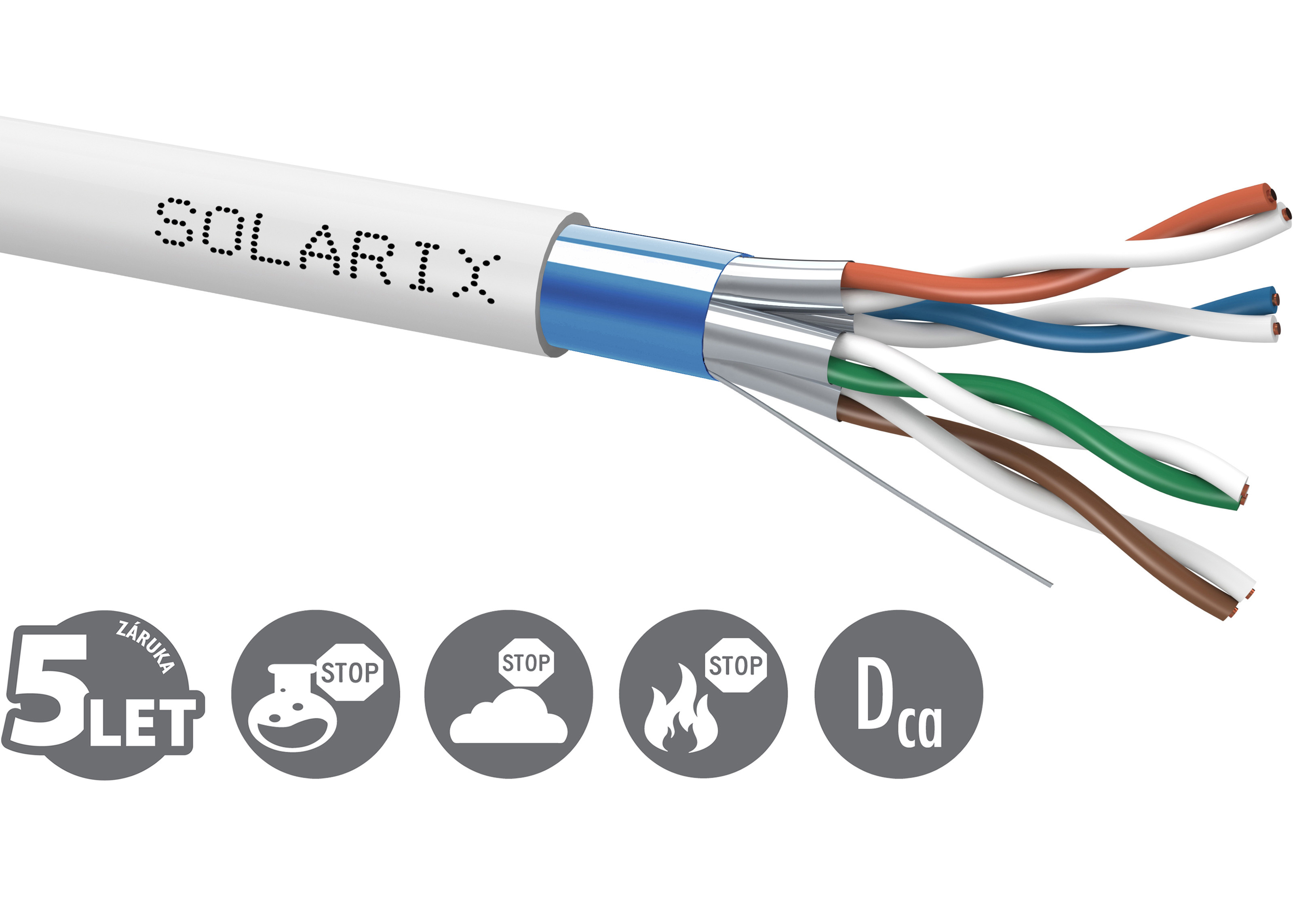 Popis Inštalačný kábel Solarix CAT6A FFTP LSOH Dca-s2,d2,a1 500m/cievka SXKD-6A-FFTP-LSOH