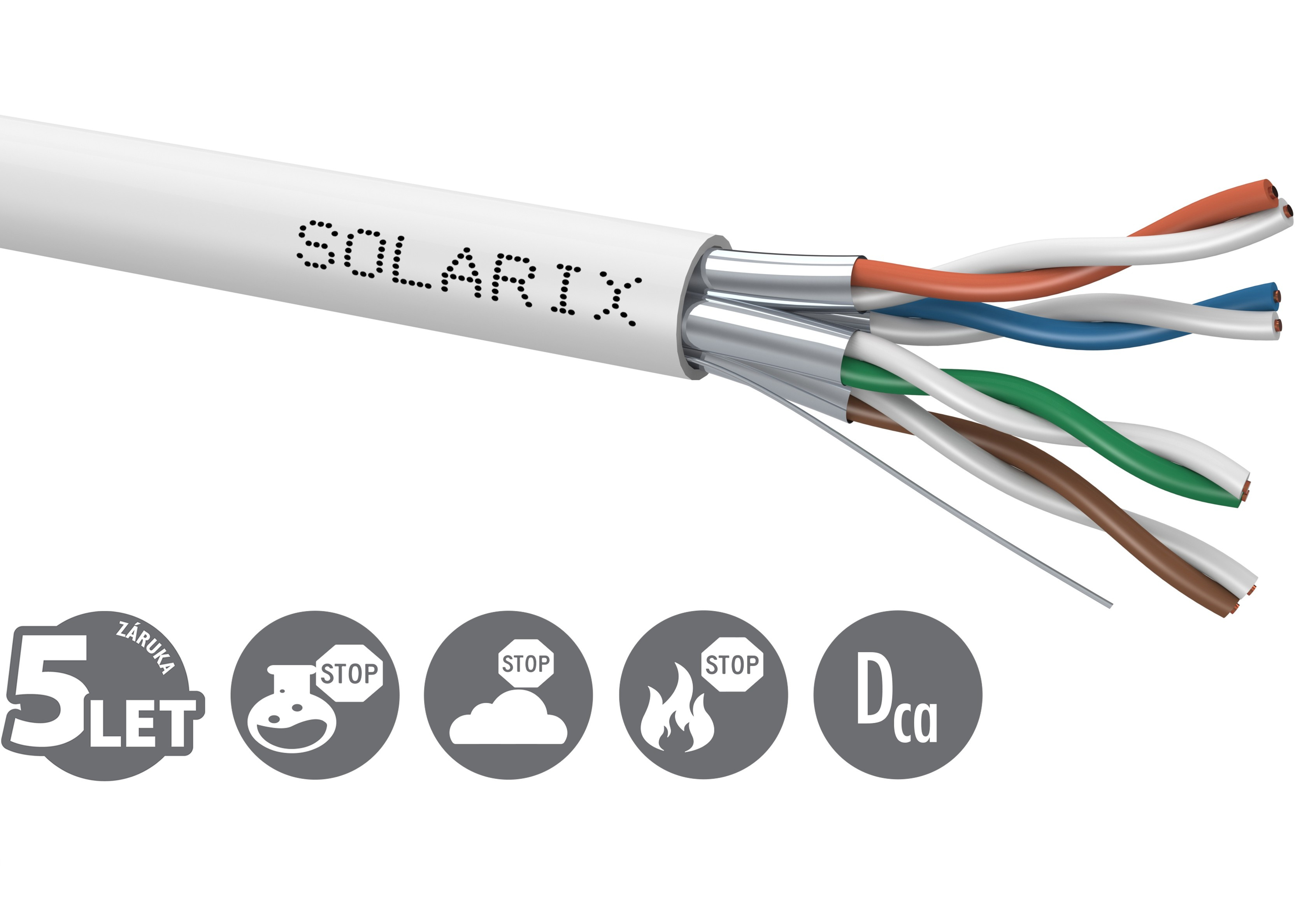 Instalační kabel Solarix s označením SXKD-6A-STP-LSOH je vysoce kvalitní stíněný kabel kategorie 6A, který je testován až do šířky pásma 650 MHz, a je určený pro provoz vysokorychlostních ethernetových protokolů, včetně 10GBASE-T. Konstrukce kabelu je U/FTP, typ pláště LSOH s třídou reakce na oheň Dca-s1,d2,a1. Vodiče kabelu jsou vyrobeny z kvalitního měděného drátu s čistotou mědi 99,97 %. Kabel bez problémů splňuje požadavky z mezinárodních standardů ISO/IEC 11801, EN 50173 a ANSI/TIA 568.2-D. Výkonové parametry tohoto kabelu byly otestovány nezávislou testovací zkušebnou FORCE TECHNOLOGY v rámci programu EC Verified, a to na nejvyšší úroveň tzv. Component Level. Certifikát je k dispozici zde na webu v záložce "Odkazy" nebo přímo na stránkách laboratoře FORCE. V případě CPR (nařízení EU č. 305/2011) je kabel testován v systému posuzování vlastností AVCP 3. Stejně jako ostatní kabely Solarix, je i kabel SXKD-6A-STP-LSOH značen metráží po 1 m v rozsahu od 0 do 500 m. Kabel je dodáván na vysoce pevné dřevěné cívce, na které jsou uvedeny všechny nezbytné produktové informace, včetně čárových kódů, výrobní šarže, popisu a nejdůležitějších technických parametrů.