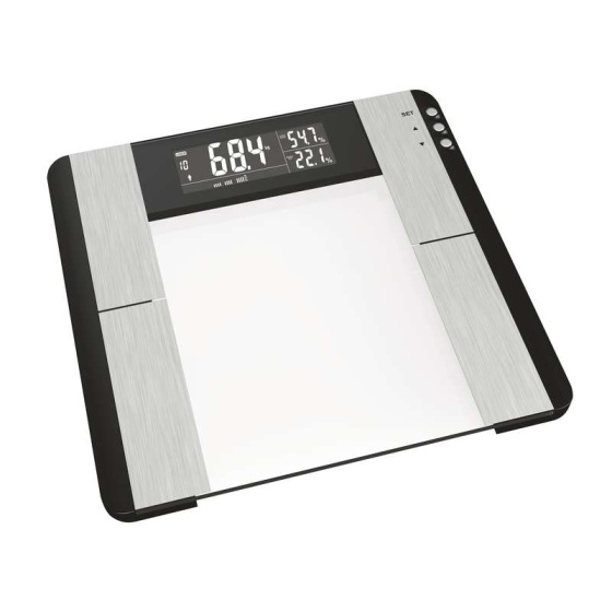 produkt osobní váha LCD displej ano podsvícený displej ano povrch váhy tvrzené sklo funkce dovažování ne max. zátěž 150 kg přesnost vážení 100 g Bluetooth ne BMI index – měření tuku, vody a svalové hmoty ano jednotky váhy kg, lb, St indikátor přetížení ne paměť max. 10 osob automatické vypnutí po 35 sekundách indikace slabých baterií ano barva stříbrná napájení 2× 1,5 V AAA (součástí balení) rozměr 20 × 320 × 330 mm prodejní obal 1 ks, krabice energetická třída neuvádí se záruční doba 2 roky
