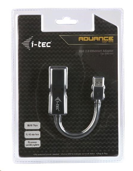 i-Tec USB 2.0 Advance 10/100 Fast Ethernet LAN sieťový adaptér USB 2.0 až RJ45, LED, pre tablety, ultrabooky, Windows, Android, Linux, Mac