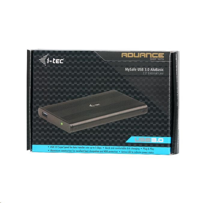 Séria ADVANCE je špičkový rad príslušenstva i-tec, ktorý vám umožní využívať špičkovú technológiu produktov v modernom dizajne a exkluzívnom balení. i-tec USB 3.0 MySafe AluBasic je externý rám pre všetky 2.5" SATA I/II/III HDD alebo SSD s výškou do 9.5 mm. Pripojenie cez USB 3.0 ponúka rýchly a jednoduchý prenos dát (až 5 Gb/s). Spätná kompatibilita s USB 2 je samozrejmosťou.0. Pevná hliníková konštrukcia na optimálny odvod tepla a ochranu disku. Rám sa dodáva s káblom USB.