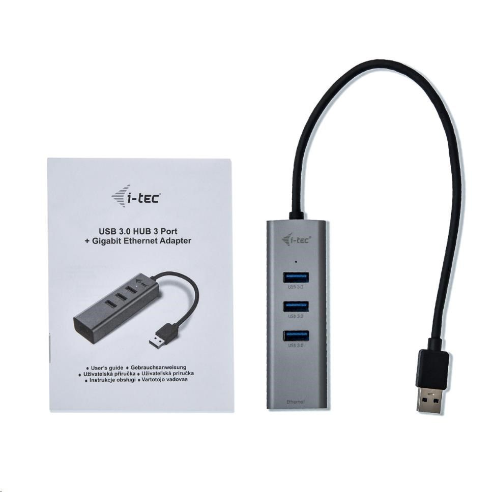 - i-tec USB 3.0 Kovový HUB 3 porty + Gigabit Ethernet adaptér s káblom (28 cm)