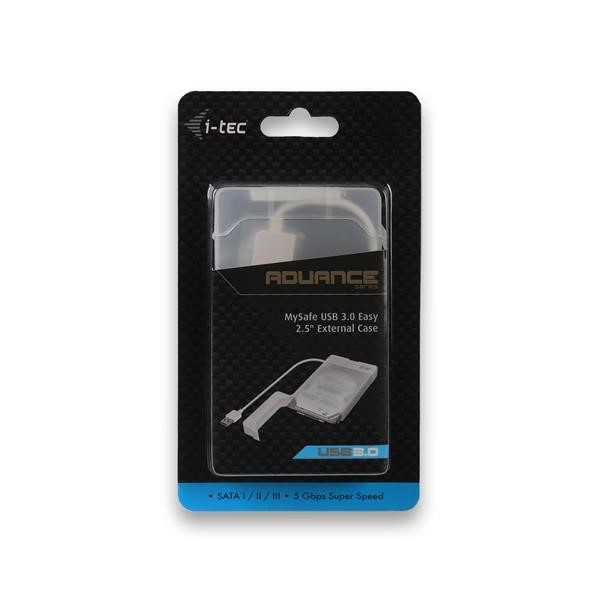 i-tec MySafe USB 3.0 Easy je externý rám pre pripojenie 2.5" disky SATA všetkých kapacít k počítaču, notebooku, televízoru alebo inému multimediálnemu zariadeniu prostredníctvom rozhrania USB, ktoré je zároveň napájané. Rám je vhodný aj na presun údajov z poškodeného notebooku. Pripojenie cez USB 3.0 ponúka rýchly a jednoduchý prenos dát (až 5 Gb/s). Spätná kompatibilita s USB 2 je samozrejmosťou.0.