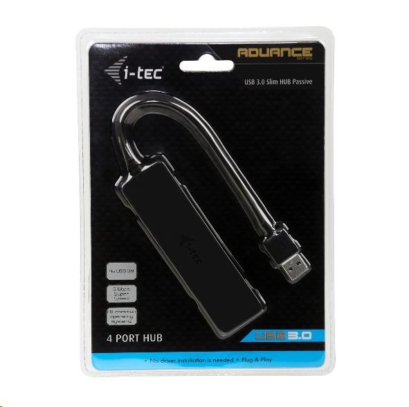 i-tec USB 3.0 HUB je ideálnym príslušenstvom pre každého, kto má na svojom notebooku, ultrabooku alebo počítači nedostatok portov USB a je nútený neustále pripájať a odpájať svoje obľúbené zariadenia USB, ako sú flash disky, mobilné telefóny, tablety, digitálne fotoaparáty, prehrávače MP3, tlačiarne atď. - 4x USB 3.0 port na pripojenie zariadenia USB a vysokorýchlostný prenos dát (5 Gb/s) Systémové požiadavky Operačný systém Obsah balenia