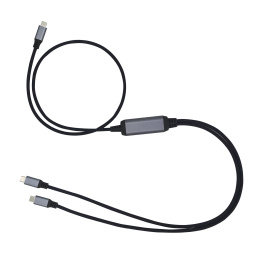 Popis Kábel C-TECH USB Type-C PD 100W power splitter, 0,7m + 2x0,5m, čierny