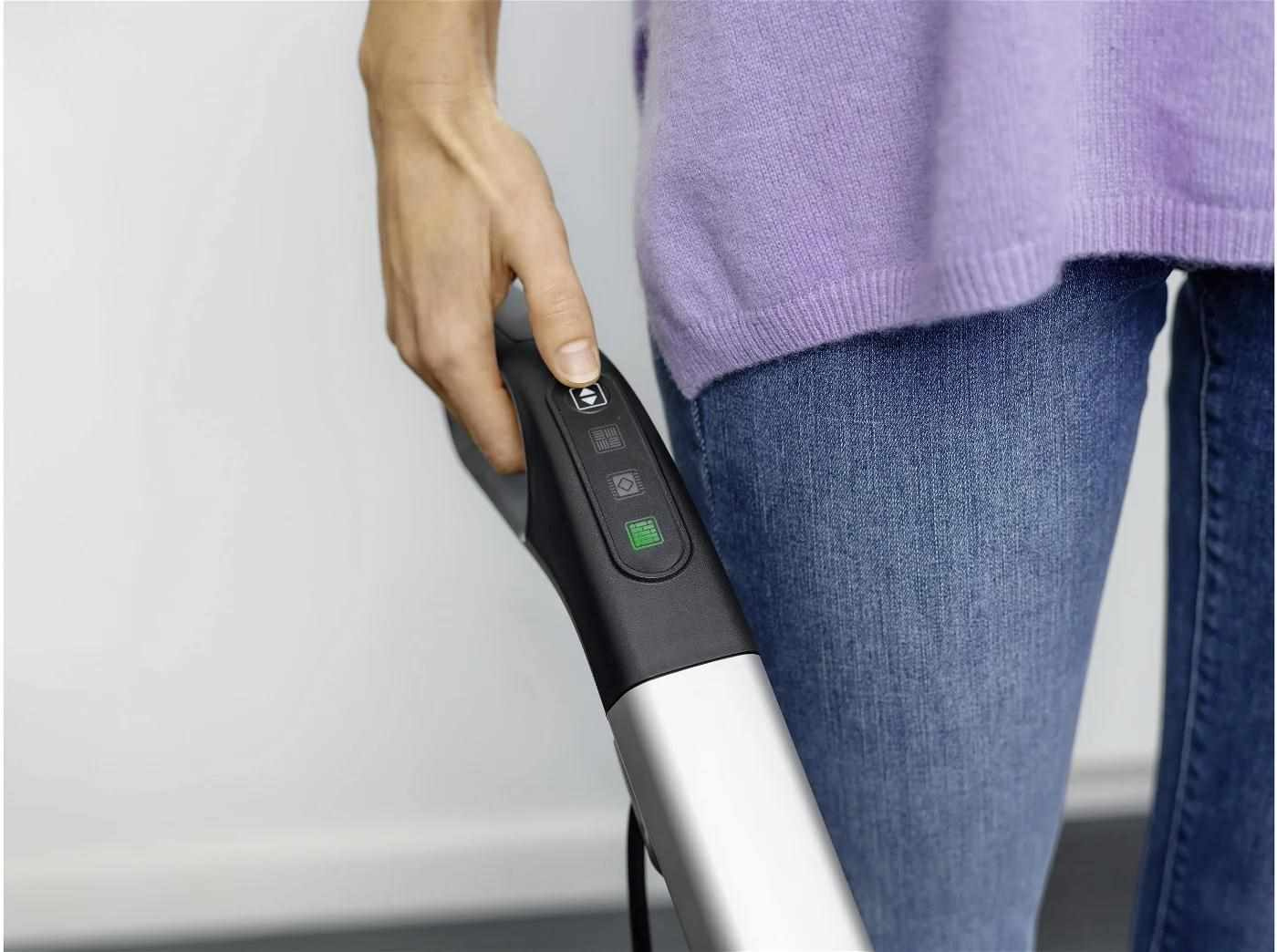 Parní mop Kärcher SC 3 Upright EasyFix s vysokou účinností zabíjí i KORONAVIRY* a BAKTERIE**. Vyznačuje se pohodlnou manipulací, prací bez přerušování a neustálou připraveností pustit se kdykoliv do práce (odnímatelná a doplnitelná nádrž). Nahřívání trvá pouhých 30 s a stav mopu vám prozradí LED ukazatel. Využít lze 3 stupně páry pro dřevo, dlažbu či koberce. Součástí je i kobercový kluzák nebo odvápňovací patrona změkčující vodu. Za jednoduchou manipulací podlahového čističe se skrývá podlahová hubice s flexibilním kloubem a chytré upínání utěrky z mikrovláken na suchý zip bez nutnosti přímého kontaktu s nečistotami. * Testy ukázaly, že při bodovém čištění v přímém kontaktu s čištěným povrchem po dobu 30 sekund při max. tlaku páry s parními čističem Kärcher lze odstranit 99,999 % obalených virů, jako je koronavirus nebo chřipka (s výjimkou viru hepatitidy B), na běžných hladkých tvrdých površích v domácnostech (testovaný zárodek: Modified-Vaccinia-Ankara Virus).** Při důkladném čištění s parním čističem Kärcher bude 99,99 % všech běžných domácích bakterií zničeno na běžných hladkých tvrdých površích v domácnostech za předpokladu, že rychlost čištění je max. 30 cm/s při max. výkonu páry, a to za přímého kontaktu s čištěným povrchem (testovaný zárodek: Enterococcus hirae)..