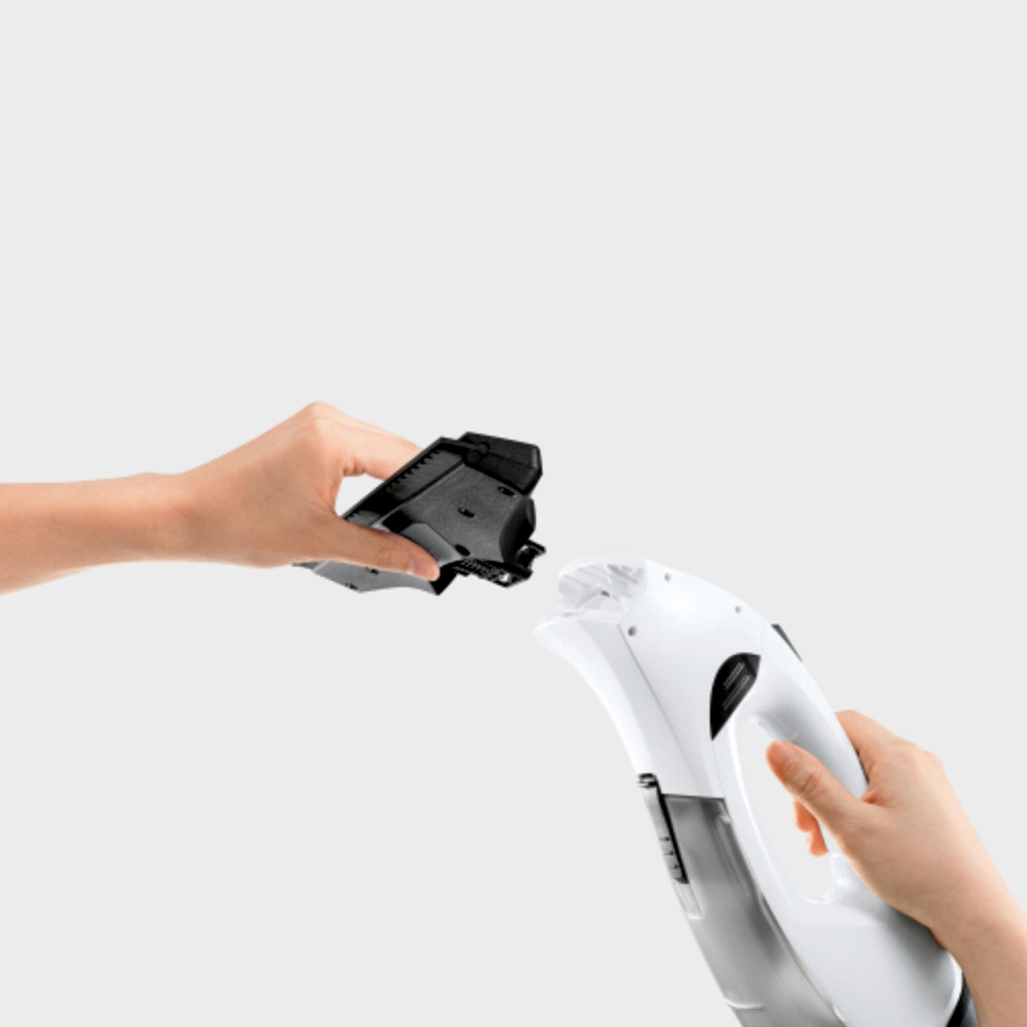 S inovatívnym čističom okien priniesla spoločnosť Kärcher revolúciu v čistení okien. Pri použití originálneho sacieho čističa okien Kärcher sa čistenie stane hračkou, ktorá vám ušetrí veľa času a námahy. Vďaka elektrickému odsávaniu je nepríjemné kvapkanie vody minulosťou. Inteligentná kombinácia rozprašovača a utierky z mikrovlákna spolu s funkciou sťahovania vysávača na okná zabezpečuje mimoriadne účinné čistenie a žiarivo čisté okná - bez šmúh a zvyškov. Praktický a ergonomický čistič okien Kärcher navyše umožňuje mimoriadne hygienické čistenie okien, pretože nedochádza k priamej kontakte so špinavou vodou.