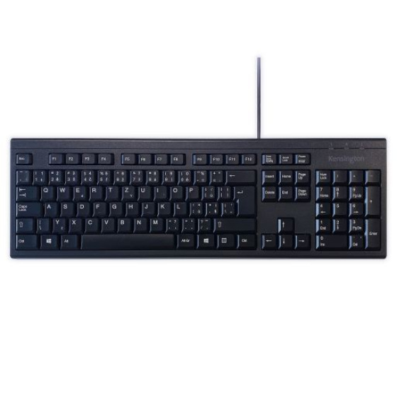 Kensington základní drátová klávesnice je vybavena membránou odolnou proti rozlití kávy, vody a jiných tekutin. Tlačítka s hmatovou zpětnou vazbou zajišťují výjimečné pohodlí a nabízejí spolehlivý provoz Plug & Play s 1,5m kabelovým připojením USB, takže je snadné začít pracovat.