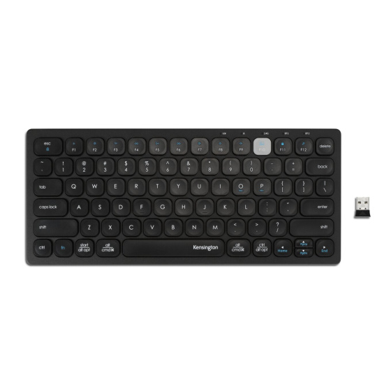 The Multi-Device Dual Wireless Compact Keyboard lets you connect and switch between up to three devices at a time (computer, tablet, or phone), using Bluetooth (3.0 or 5.0) or 2.4GHz wireless with 128-bit AES encryption. Smooth, responsive scissor keys include multimedia hot keys. Windows, macOS, iOS, and Chrome OS compatible. Low battery indicator, so you’re never caught off guard. Includes two AAA batteries. Three-year warranty. Compact design makes it easy to take anywhere and great in tighter workspaces. Dual wireless offers the flexibility of Bluetooth (3.0 and 5.0) and 2.4GHz wireless, with government-grade 128-bit AES encryption. Connect up to three devices at a time (computer, tablet, or phone) and switch from one device to another in seconds. Works with Windows, Mac, iOS, and Chrome operating systems. Scissor keys deliver smooth, responsive typing. Hot keys provide shortcuts for common commands across compatible operating systems. Low battery indicator ensures you’re never caught off guard. Get up and running instantly with the included AAA batteries. A three-year warranty means you can rest assured knowing you’re covered by Kensington. Meets MIL-STD-810H Method 504.3 Contamination by Fluids testing for resistance to breakdown when exposed to cleaning and disinfecting solvents such as alcohol and bleach for at least 24 hours. Optimised for your Windows 11 keyboard needs.