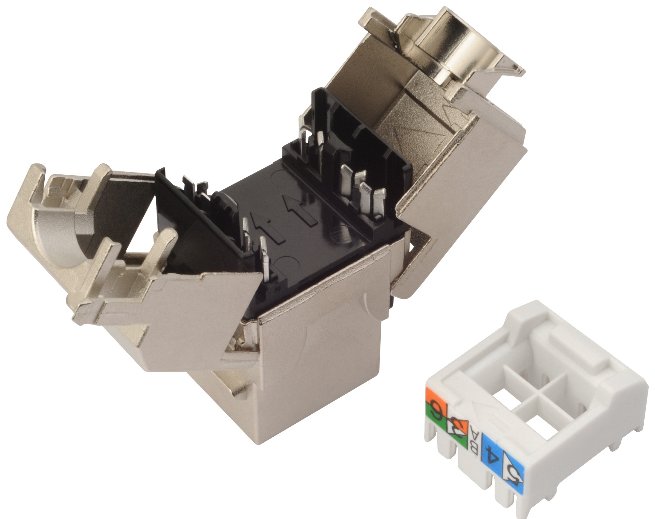 Kategorie: CAT5E Podporované protokoly: 2.5G/5GBASE-T a nižší Stínění: ano Min. životnost portu: 1 000 zapojení/odpojení Krytí kontaktů: 50 µ zlata a 100 µ niklu Svorkovnice: samozářezová Min. životnost svorkovnice: 200 zařezání Velikost a typ vodiče: AWG 26 - 22, drát Materiál nekovových částí: FR plast podle UL94-0 Barva: černá (vnitřní část), stříbrná (kovové tělo) Skladovací teplota: -40 až 70 °C Provozní teplota: -10 až 60 °C Max. provozní vlhkost: 93 % Balení: 1 ks, plastový sáček Rozměry balení (výška x šířka x hloubka): 145 mm x 90 mm x 20 mm Přepravní balení: 280 ks, kartónový box Rozměry přepravního balení (výška x šířka x hloubka): 230 mm x 515 mm x 400 mm
