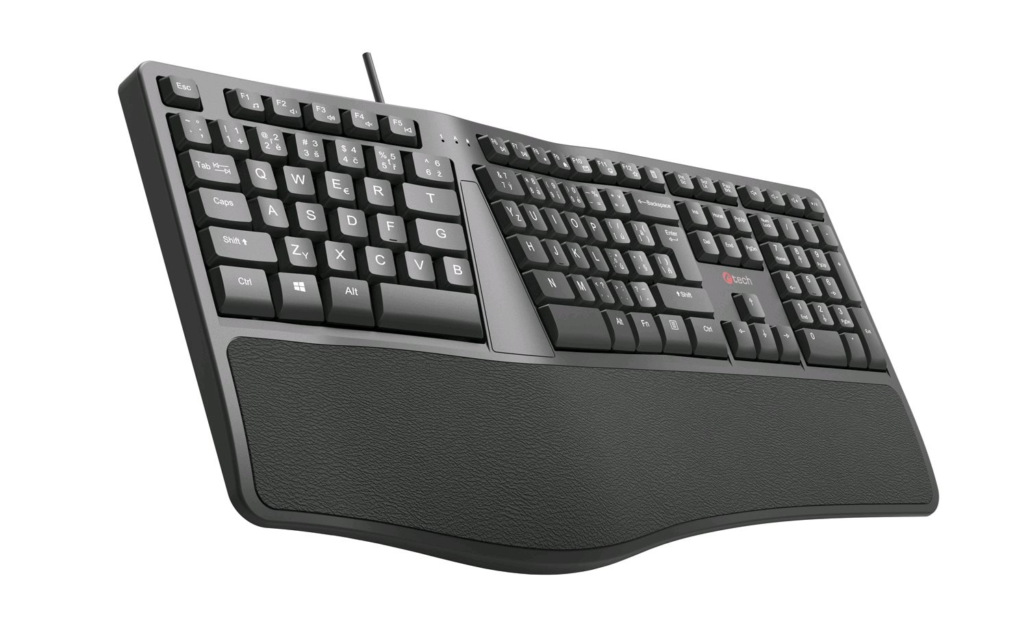 Klávesnica C-TECH KB-113E USB, ERGO, čierna, CZ/ SK