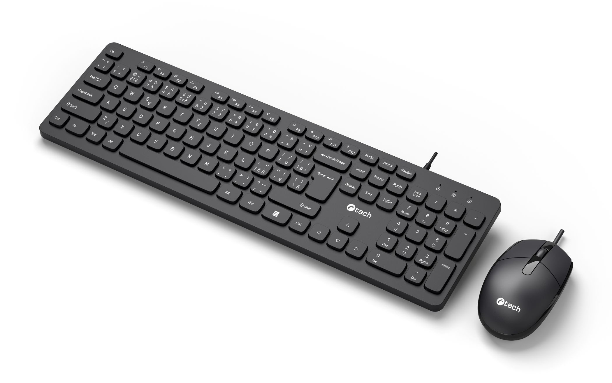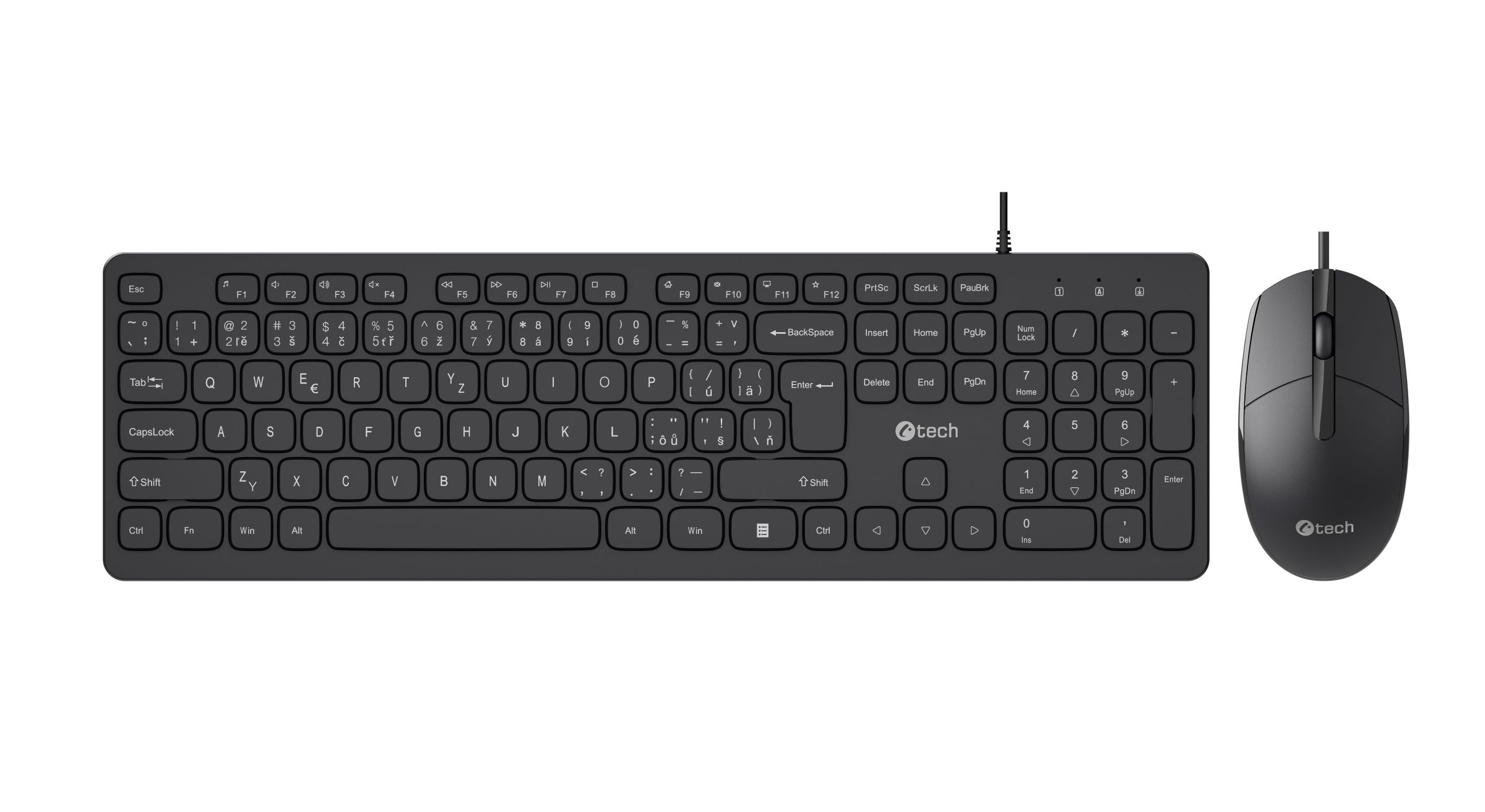 Popis Klávesnice C-TECH KBM-105, drátový combo set s myší, USB, CZ/SK
