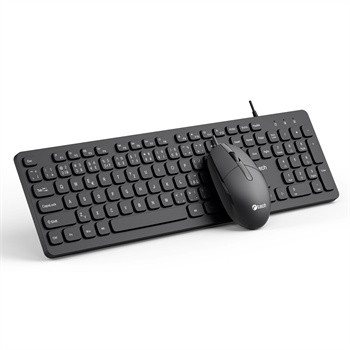 Součástí setu je drátová optická myš s rozlišením 1200 DPI, která poskytuje plynulé a přesné ovládání kurzoru. Tří tlačítková konstrukce zahrnuje tichá levá a pravá tlačítka, takže myš neruší okolí a je vhodná i do klidných kanceláří nebo domácího pracovního prostoru. Ergonomický tvar myši podporuje pohodlný úchop a snadnou manipulaci.