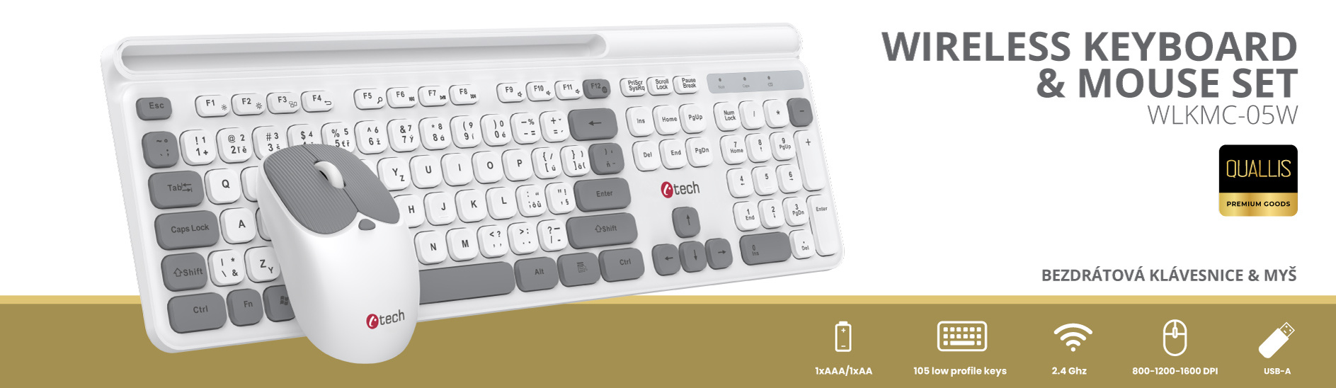 C-TECH QUALLIS WLKMC-05 – Bezdrátový set klávesnice a myši s prémiovým designem a praktickými funkcemi