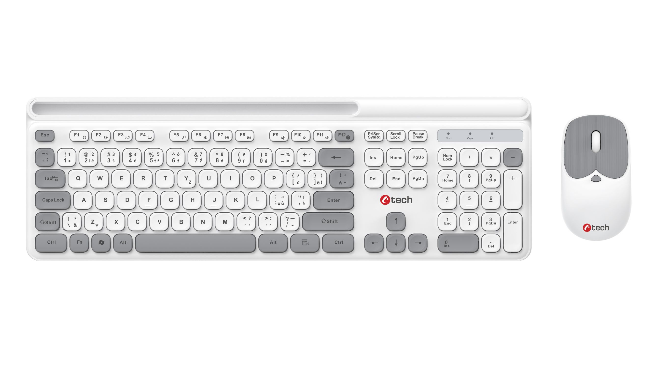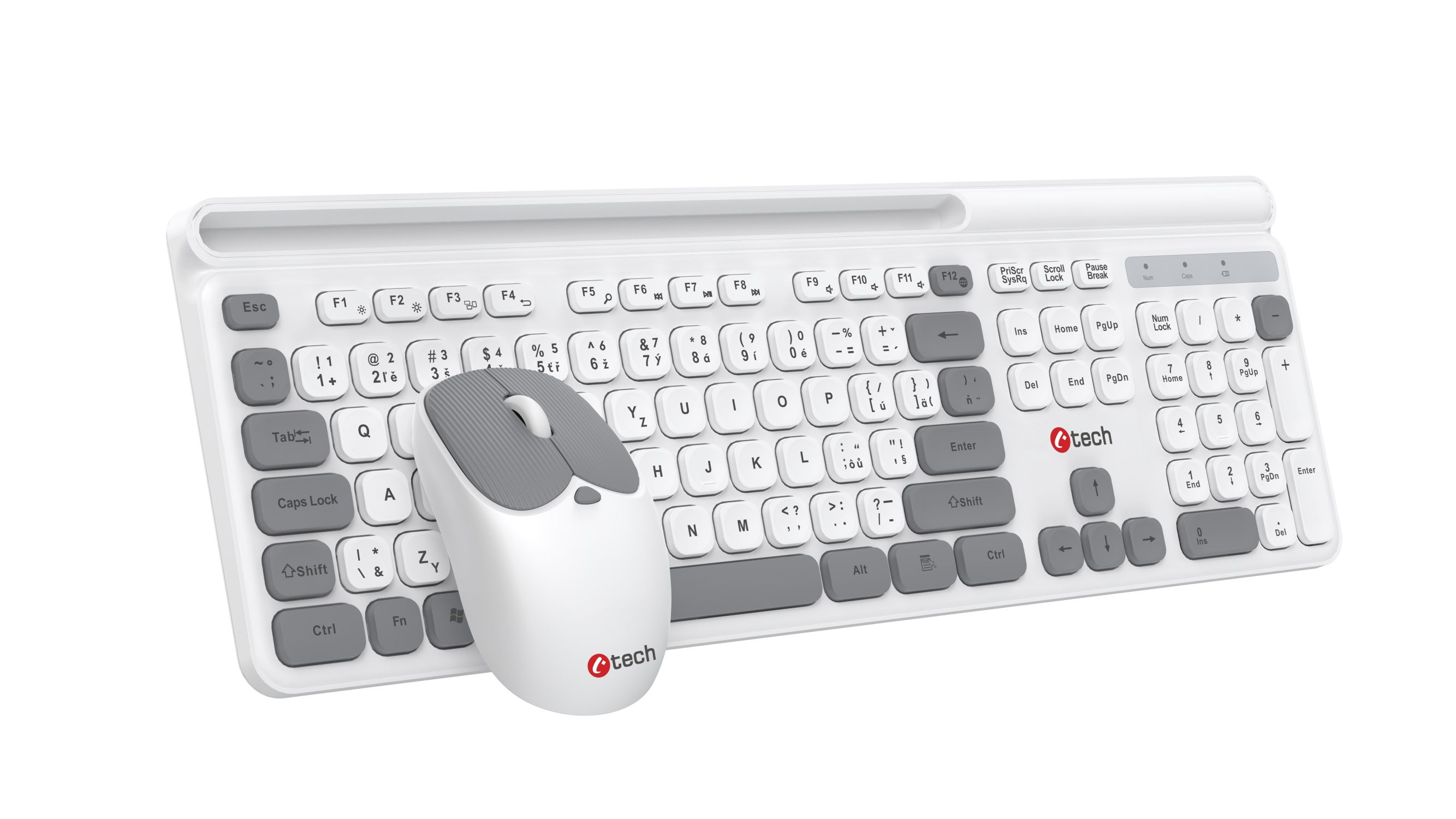 Popis Klávesnice C-TECH Quallis WLKMC-05, bezdrátový combo set s myší, bílá, USB, CZ/SK