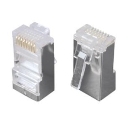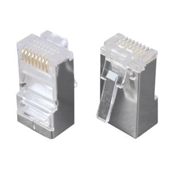 Přehled Stíněný konektor RJ45 8p8c. Pro vodič drát, kulatý kabel. Bez vložky. Konektory Solarix typu RJ45 jsou spolehlivé komponenty, které jsou konstrukčně uzpůsobeny tak, aby bylo zajištěno bezchybné spojení mezi kontakty konektoru a měděnými vodiči datového kabelu. Konektory jsou dostupné pro rozdílné typy kabelů, a to pro drát a licnu. Kontakty konektorů RJ45 CAT5E jsou kryty 50 µ zlata. Tyto konektory jsou dostupné ve stíněné i nestíněné verzi. V případě konektorů RJ12 a RJ11 je krytí zlatem 15 µ a tyto konektory jsou určeny především pro oblast telekomunikací. Konektory jsou baleny po 100 ks.