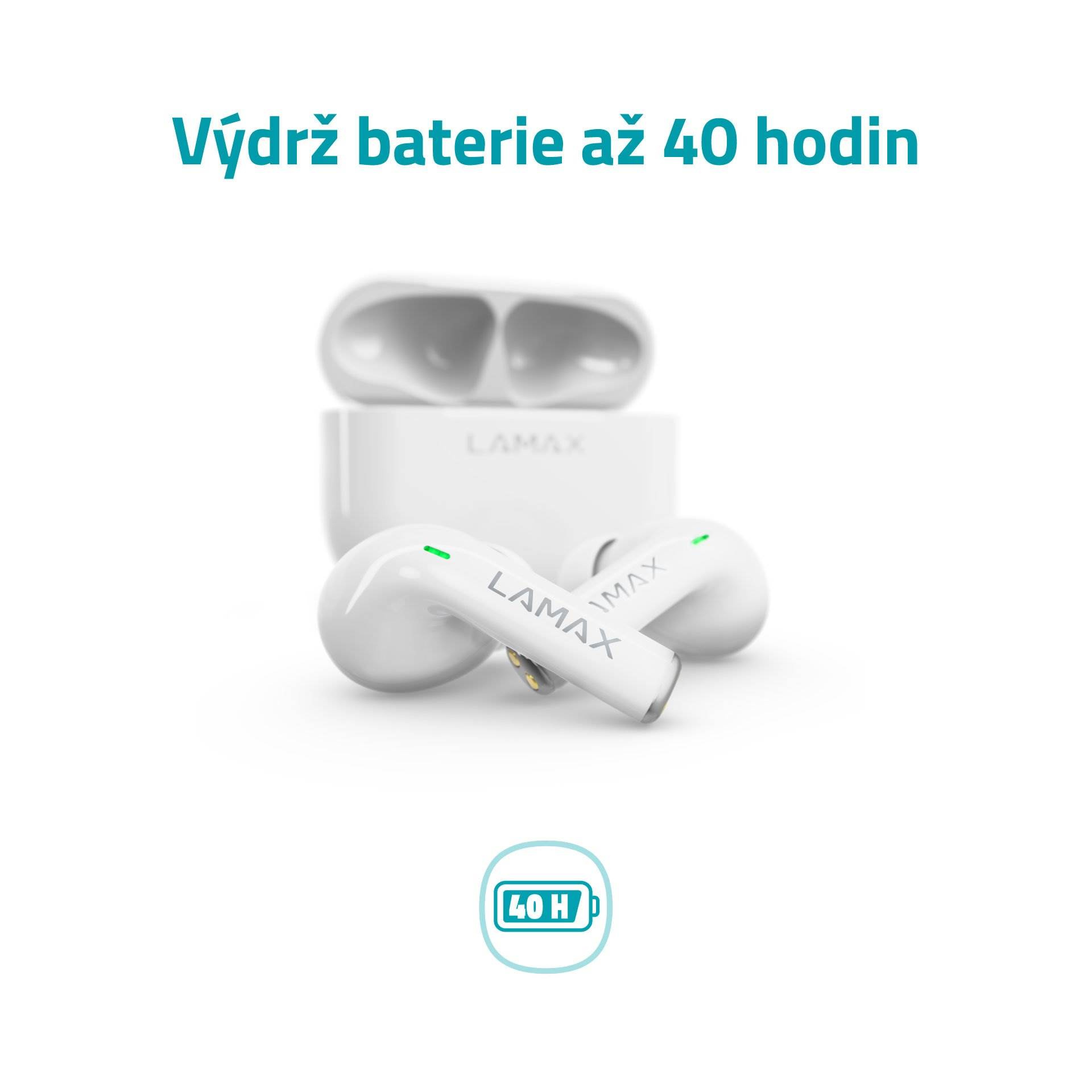 Žiadne káble? Super. Hľadať stále nabíjačku? To nechceš, a my to vieme. Preto LAMAX Clips1 vydržia až 40 hodín. 8 hodín zvládnu po vybratí z puzdra a to ich nabije až štyrikrát – kdekoľvek a bez zásuvky. Celý pracovný týždeň alebo niekoľkodenný výlet tak nemusíš šťavu vôbec riešiť.