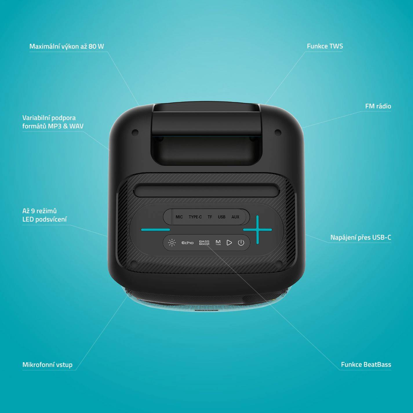 Reprak pracuje s maximálnym výkonom 80 W, čo už je slušné ozvučenie.