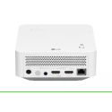 *Full HD (1920 × 1080) *Automatická vertikální korekce lichoběžníkového zkreslení (Auto Vertical Keystone) *Životnost světelného zdroje až 30 000 hodin *Flexibilní velikost obrazu (30" až 120" obraz) *LG webOS *Kompatibilní s Apple Home a AirPlay *Web Browser Projekční technologie: DLP Nativní rozlišení: Full HD (1920x1080) Svítivost [lm]: Up to 450 ANSI Lumens Kontrast: 150,000:1 Formát zobrazení: 16:9 / Original / 4:3 / Vertical Zoom / 4-Way Zoom Velikost obrazu [palce]: 30" ~ 120" Projekční vzdálenost [m]: 5.2 ft (1.58 m) @ 60", 8.7 ft (2.65 m) @ 100" Throw Ratio: 1.2 Zvuk: Mono Speaker, Dolby Atmos compatible, Bluetooth sound out Rozhraní: *HDMI (2x) *USB Type-A (USB 2.0, 1x) *Audio out (3.5mm jack, 1x) *RJ45 *HID *Bluetooth Napájení: Adapter 65W Spotřeba [W]: 62 W Spotřeba Standby [W]: méně než 0,5 W Hladina hlučnosti [dB]: 24 / 26 / 29 dB (Economic / Normal / High brightness) Rozměry [mm]: 147.32 x 66.04 x 147.32 (5.8" x 2.6" x 5.8") Hmotnost [kg]: 1.0 kg (2.2 lbs) Obsah balení: *Manual (Simple Book) *Power Cord *Remote Control (1 Normal, battery included) *Warranty Card Záruka: 36 měs., 6 měs. lampa