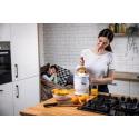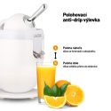 Elektrický citrusovač je vybaven funkcí Anti Drip proti odkapávání, na lince tedy nezůstává nepořádek. Při odšťavňování odtéká šťáva přímo do sklenice, případně dochází k jejímu hromadění v zásobníku o kapacitě 0,6 l. Celý odšťavňovací proces je velice efektivní a rychlý díky jedinečnému tvarování kuželu a nastavení páky. Uživatele přístroje jistě potěší jeho snadná údržba, kdy stačí odnímatelné části vložit do myčky.