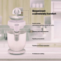 Provoz citrusovače je natolik tichý, že můžete připravit rodině k snídani čerstvý džus, aniž byste přitom vzbudili celou rodinu. Přístroj se stane také krásným doplňkem interiéru kuchyně díky svému čistému elegantnímu designu. Opomíjena není ani bezpečnost, tu zajišťují protiskluzové nožičky a pojistka zabraňující spuštění, pokud není lis správně sestaven.