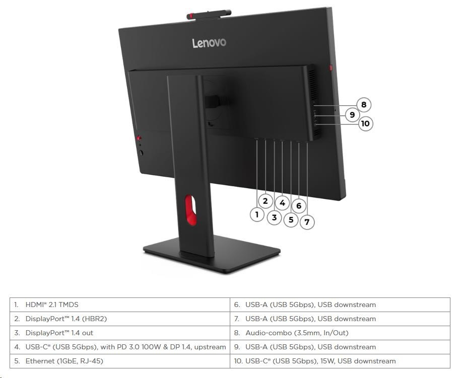 | Internetové pripojenie | 1x HDMI® 2.1 TMDS, 1x DP 1.4 (HBR2), 1x DP 1.4 Out, 1x USB-C® (DP 1.4 Alt Mode HBR2) |