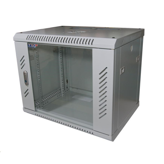 LEXI-Net 19" nástěnný rozvaděč 9U 600x450, nosnost 60 kg, skleněné dveře, rozložený, šedý